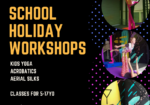 During School Holidays we offer Full Day / Half Day /Afternoon workshops in Aerial Silks + Trapeze + Acrobatics.